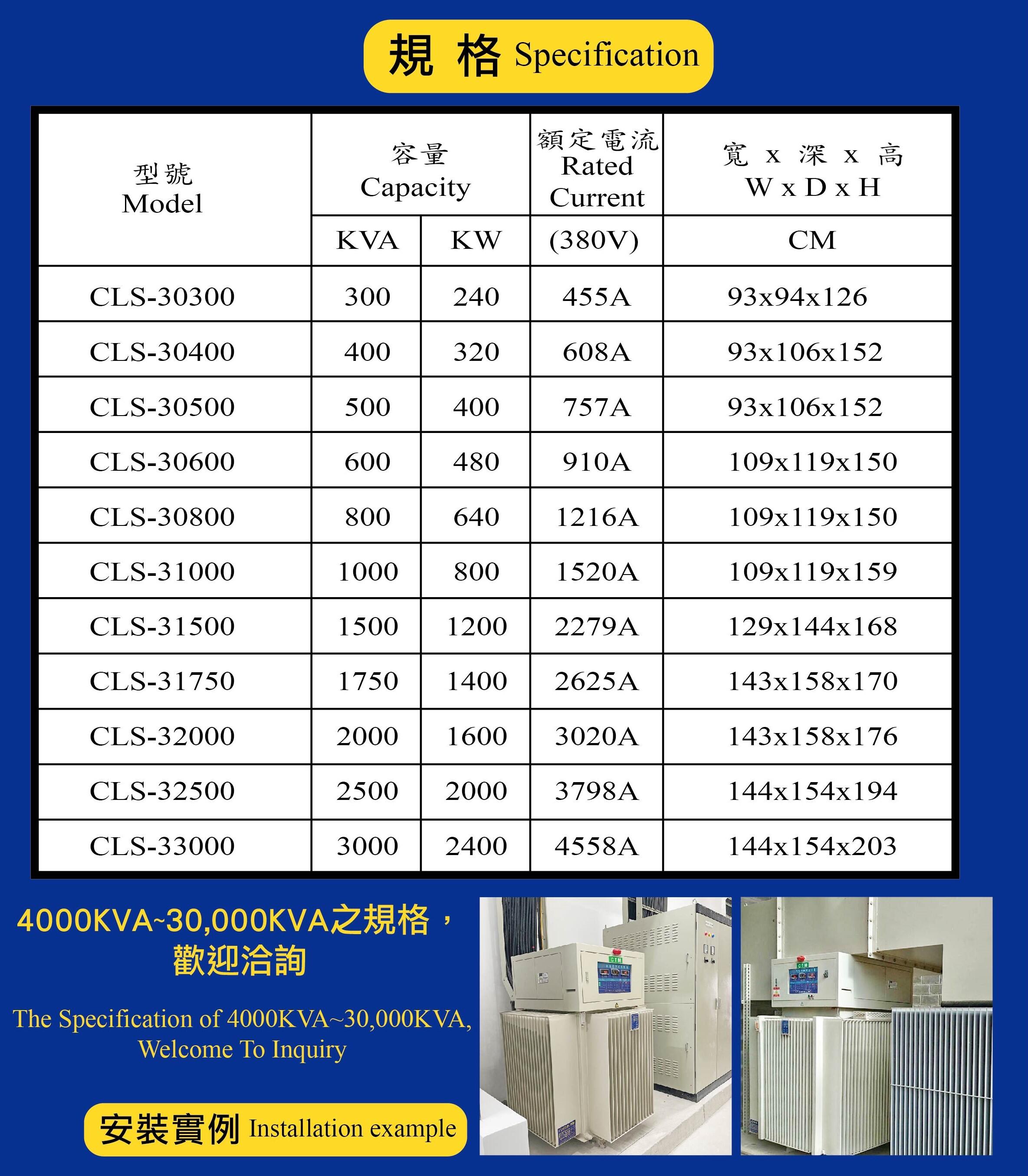 感应式是唯一单机可做超大型容量之稳压器,可生产30,000KVA以上机型。