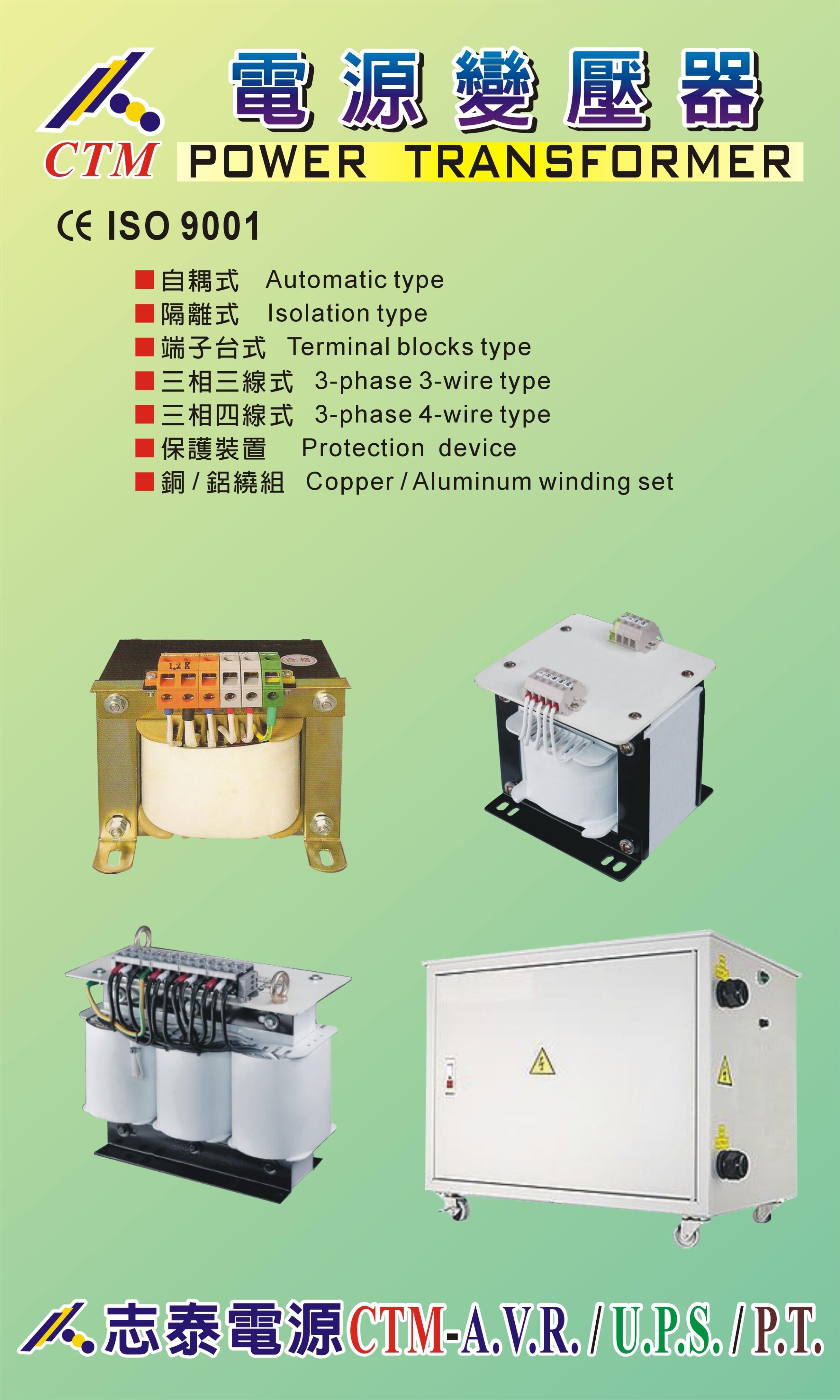 此系列之变压器乃是内装置用,有自冷式、风冷式,其外置板金一体成形结构佳、低噪音、全系列静电粉体烤漆,符合国际美观环保要求。其设置可分:落地型、附轮型,适用于CNC数控机床、精密机器、整厂设备、大楼建筑等安全防火要求较高之场所。